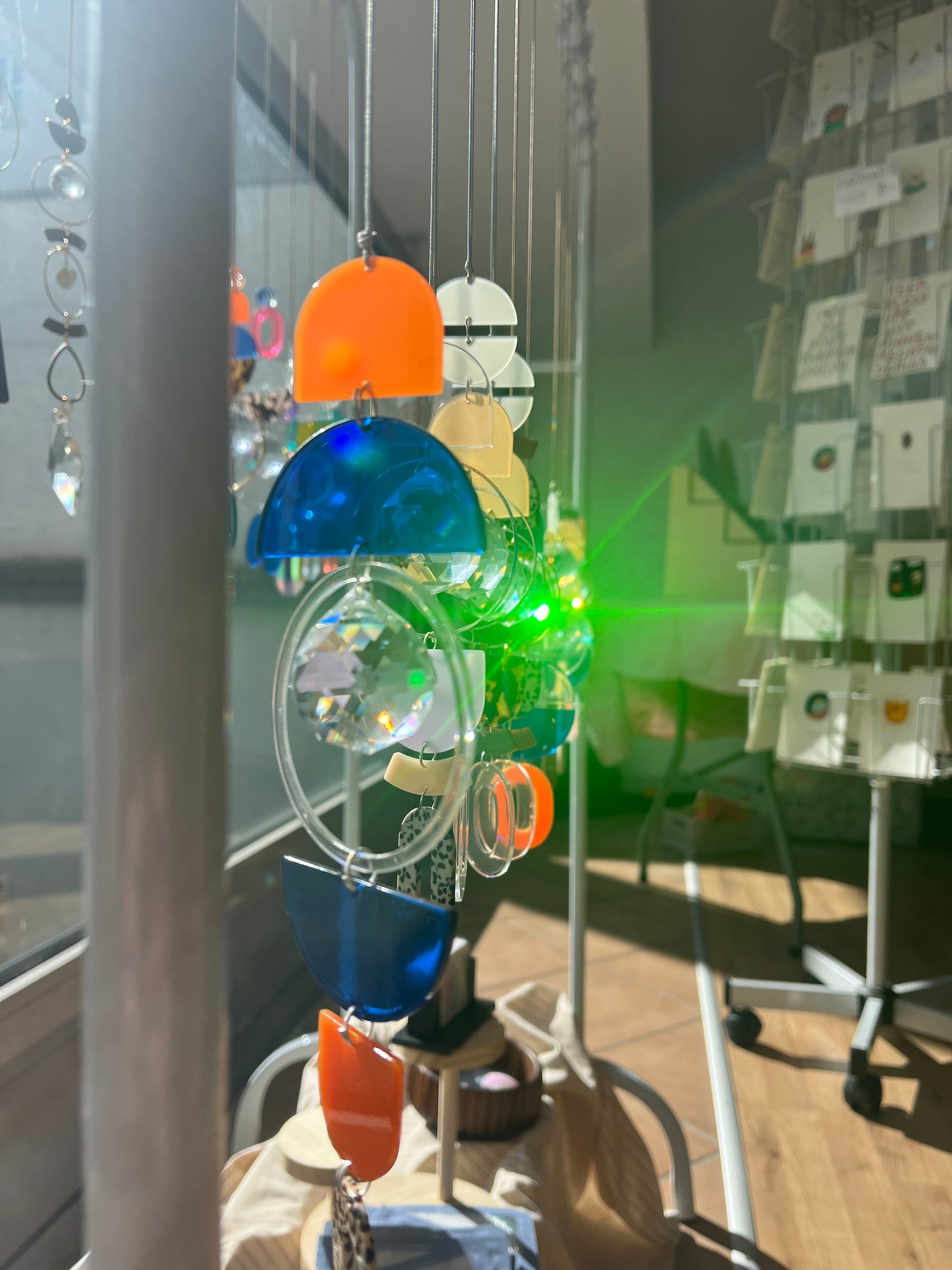 Seit 2018 kreiere ich Lichtfänger, damals aus Leidenschaft neben meinem Makrameegewerbe, und nun seit diesem Jahr ausschließlich. Am liebsten so bunt wie möglich mit Pünktchen und Leomuster. Du findest in meinem Shop Einzigartige SUNCATCHER die in jedem Raum ein Hingucker sind. Bring Licht und Farbe in dein Zuhause und lass die Sonnendisco tanzen. 🪩