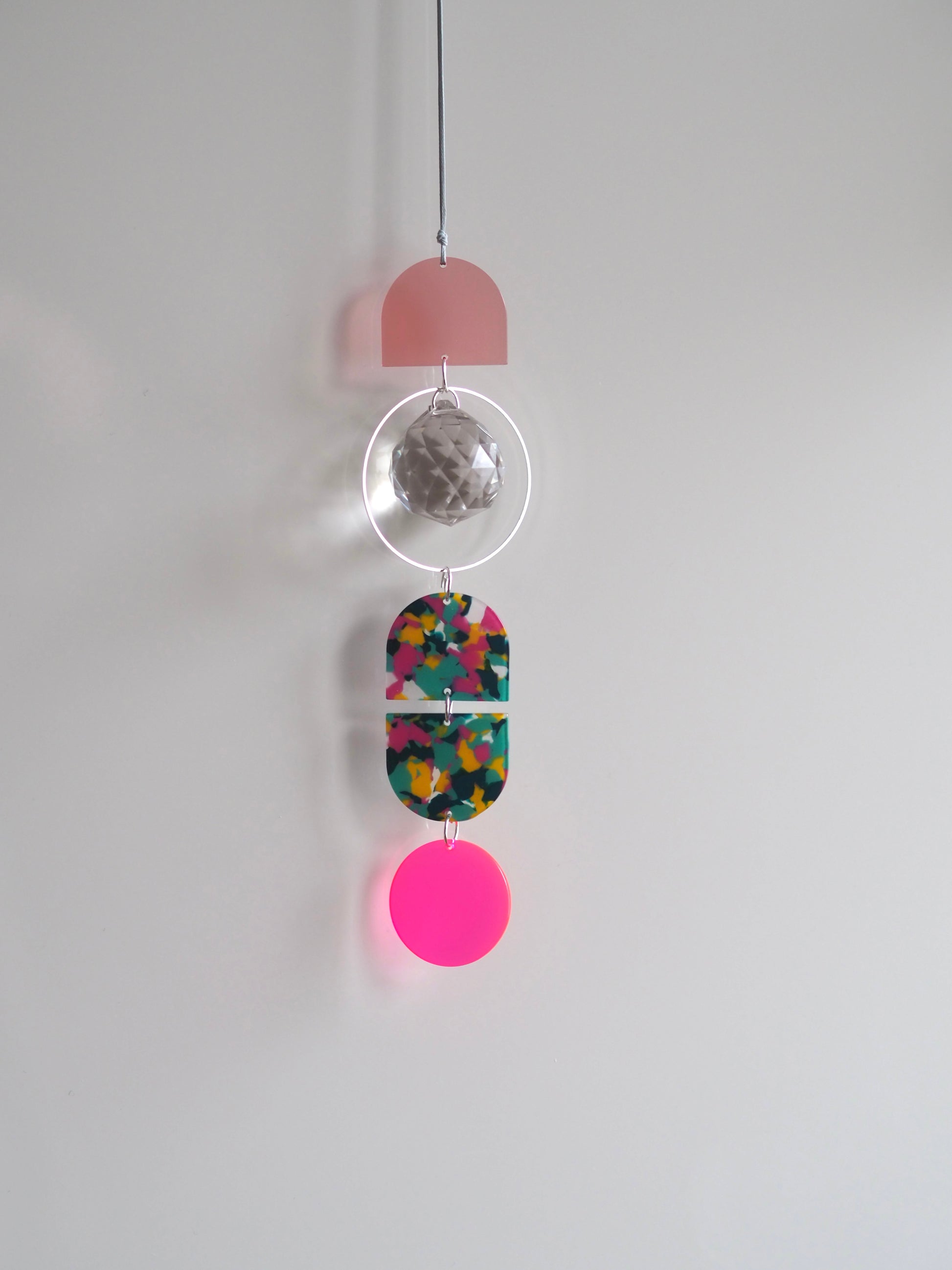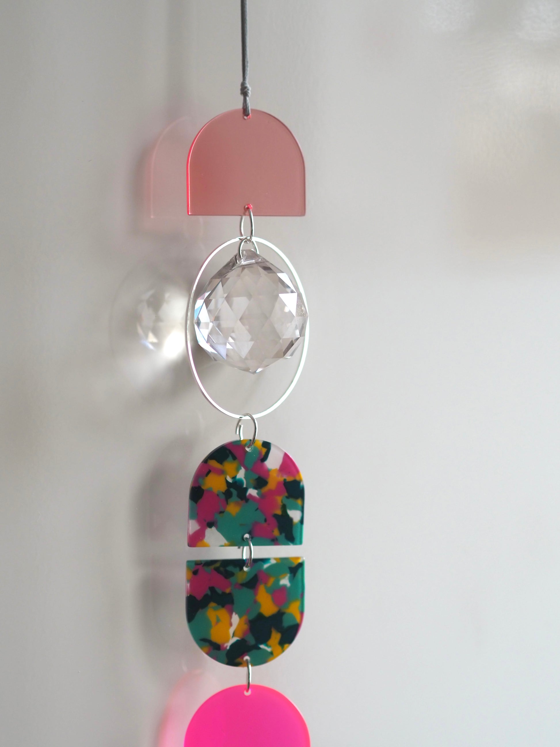 SUNCATCHER mit einem 3 integrierten Prisma und einer lange von 20cm. Befestigt an einem 40cm Wachsband.
