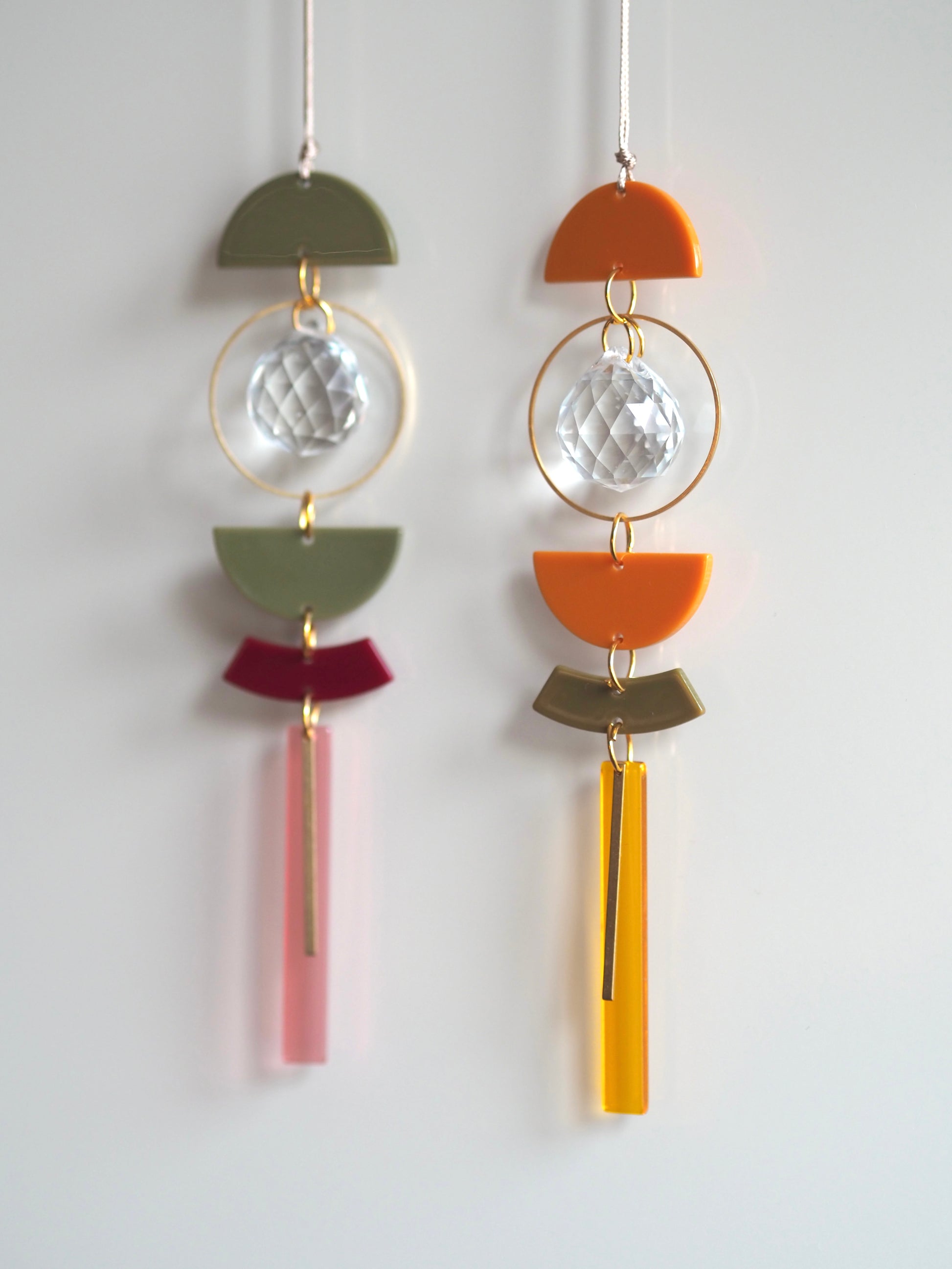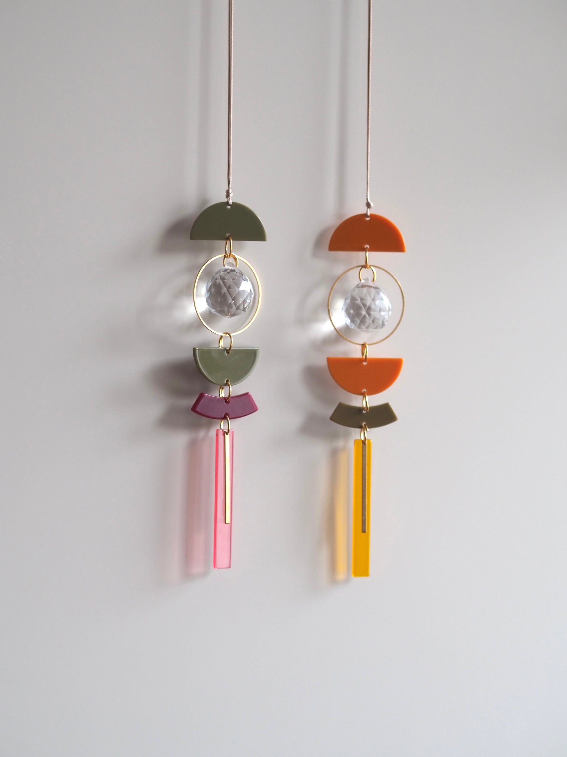 Mini Suncacher in einer Länge von 14cm. Integriert ist ein 2cm Prisma und befestigt ist der SUNCATCHER an einem 40 cm langen wachsband.