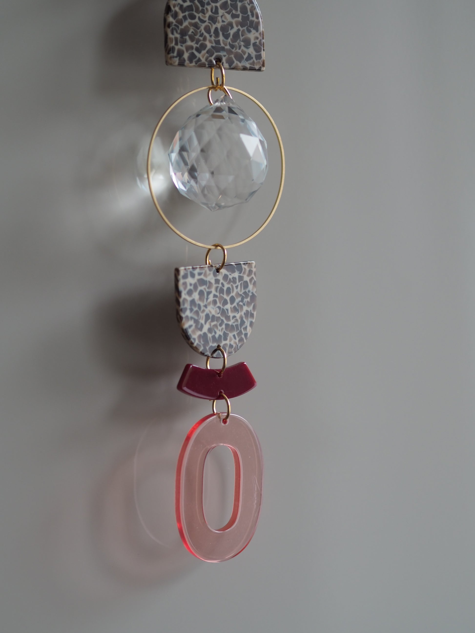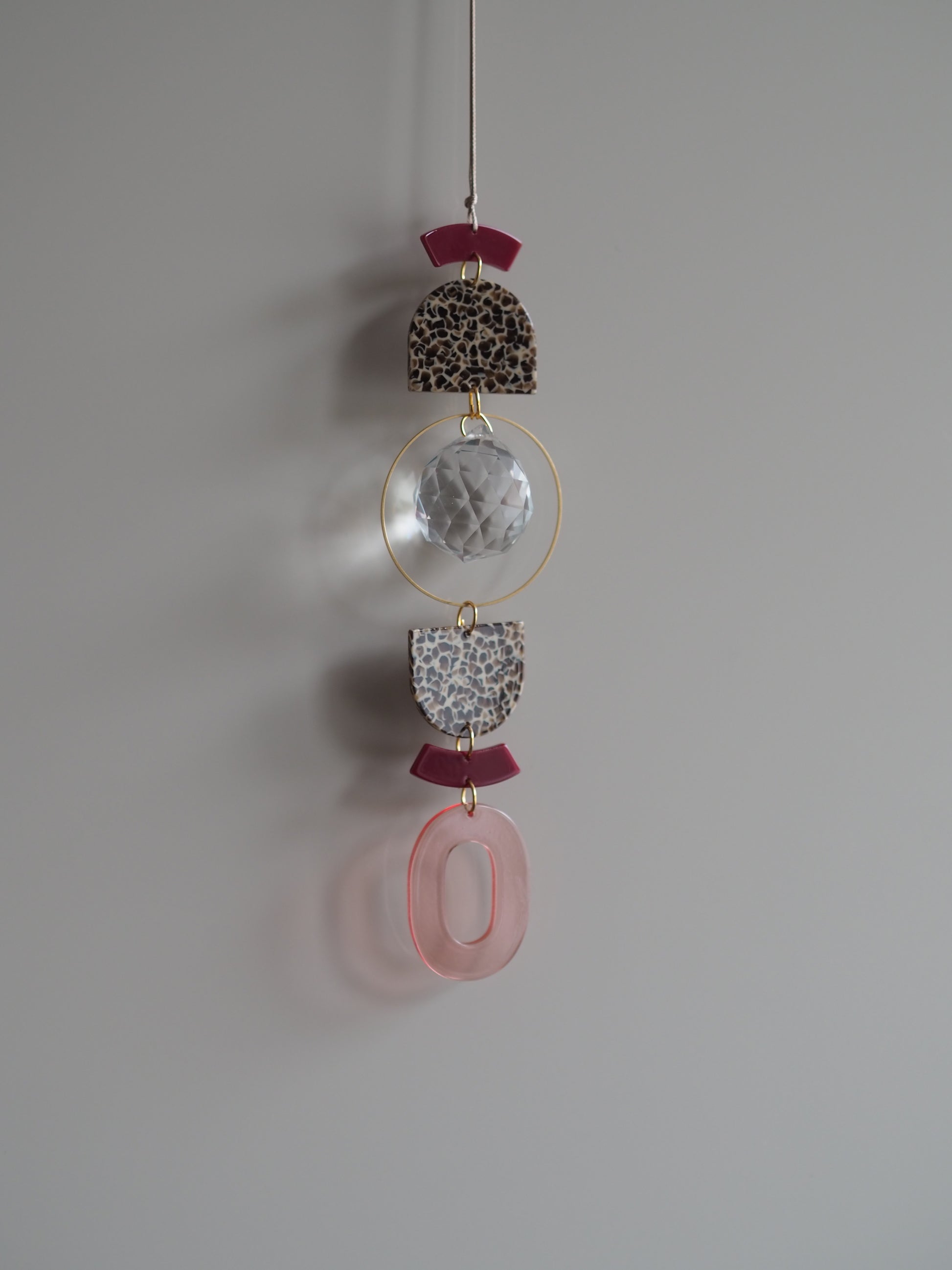 Integriert ist ein 3cm großer Kristall. Die Länge des Lichtfängers ist ca 20cm und er wird an einem 40cm langem Wachsband befestigt.