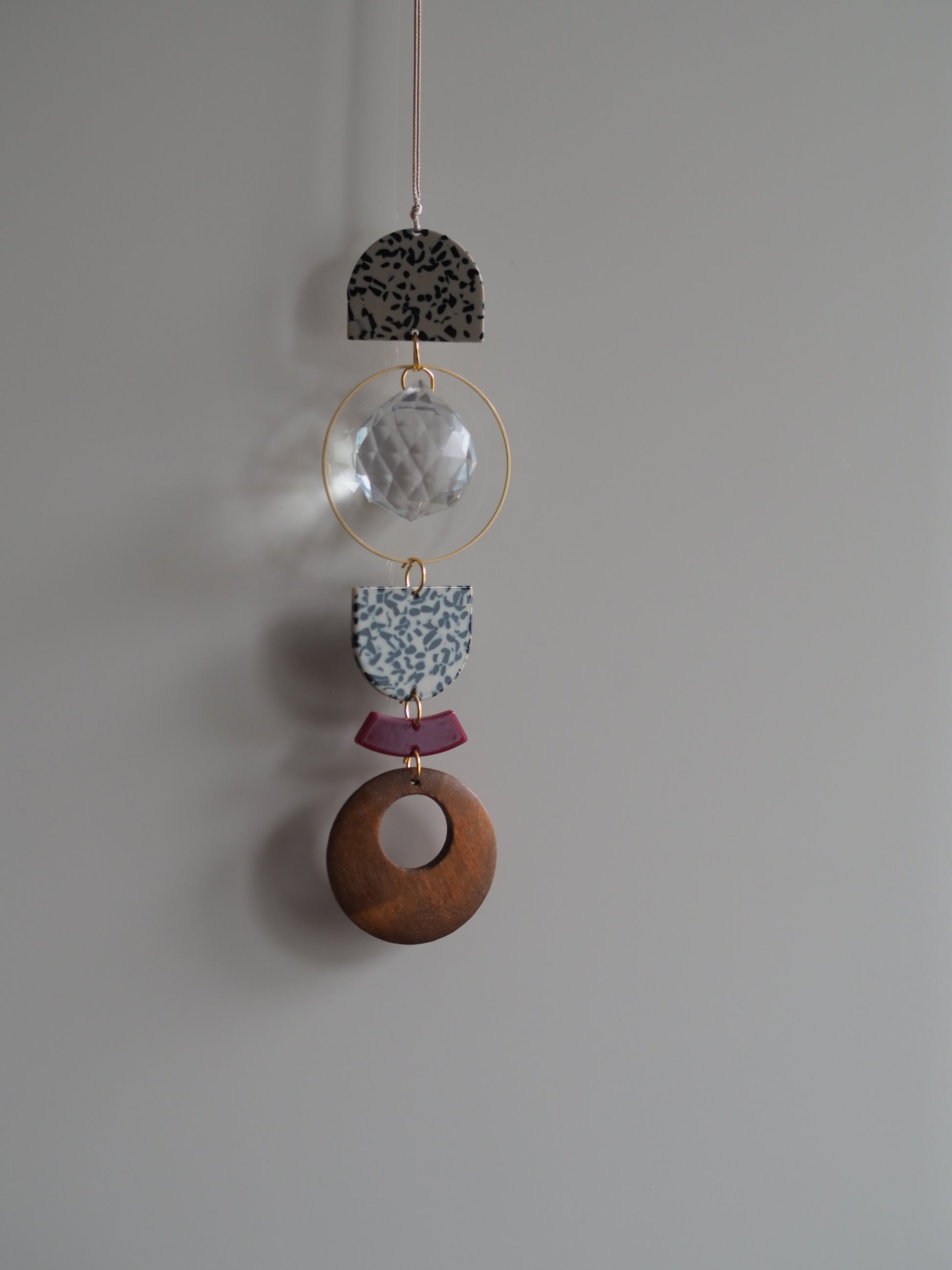 Integriert ist ein 3cm großer Kristall. Die Länge des Lichtfängers ist ca 20cm und er wird an einem 40cm langem Wachsband befestigt.
