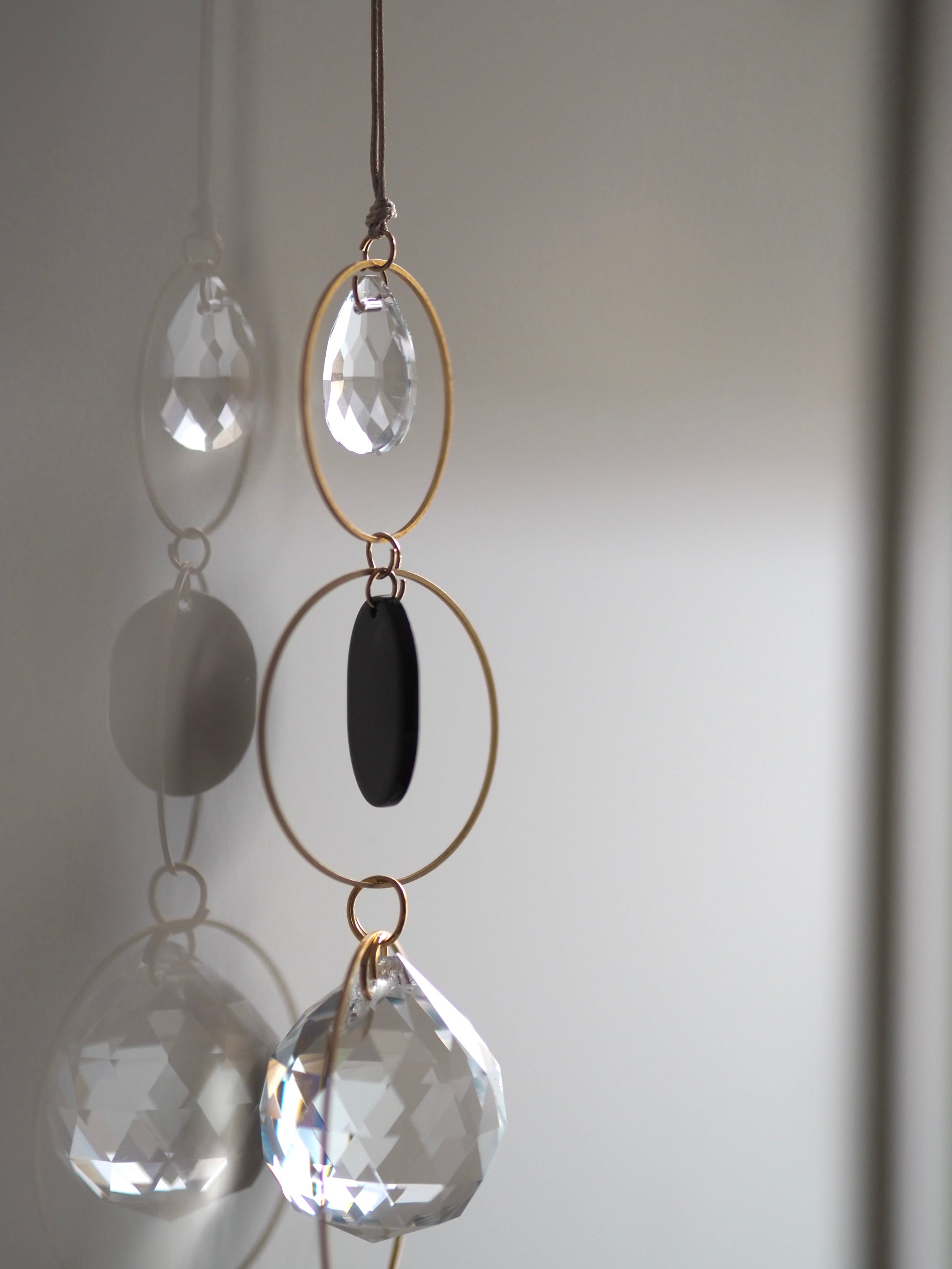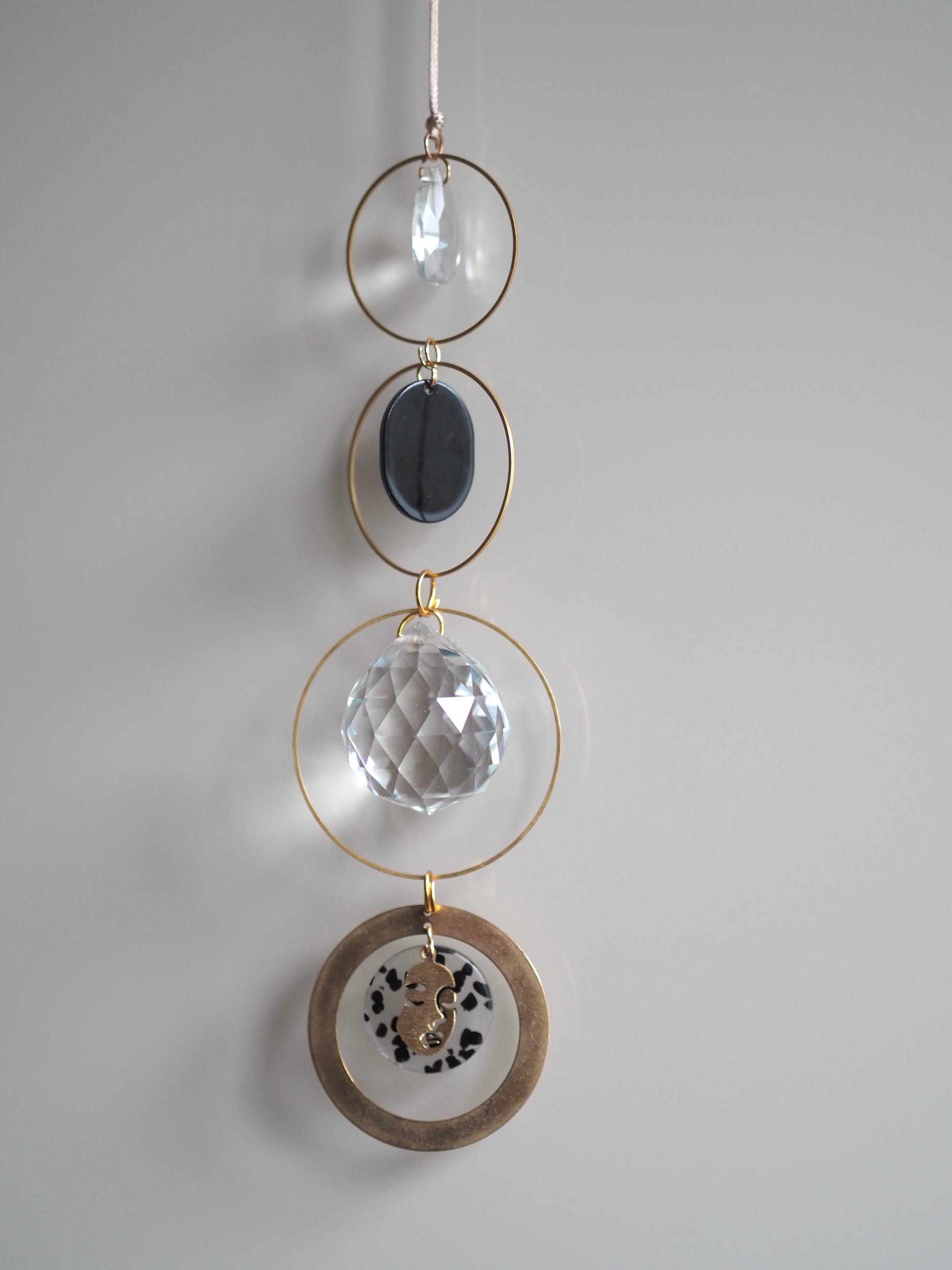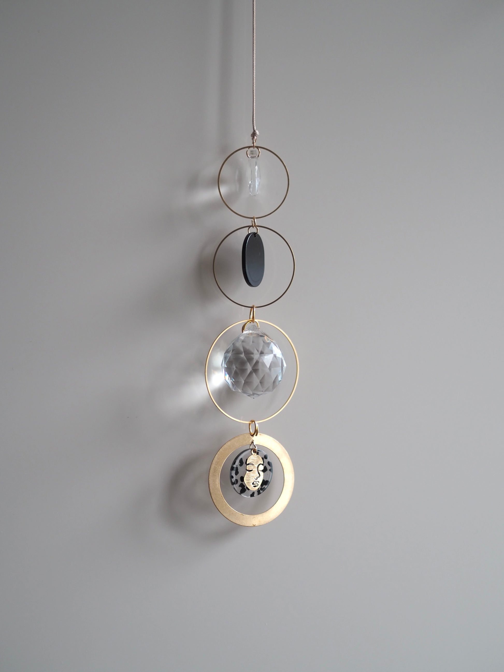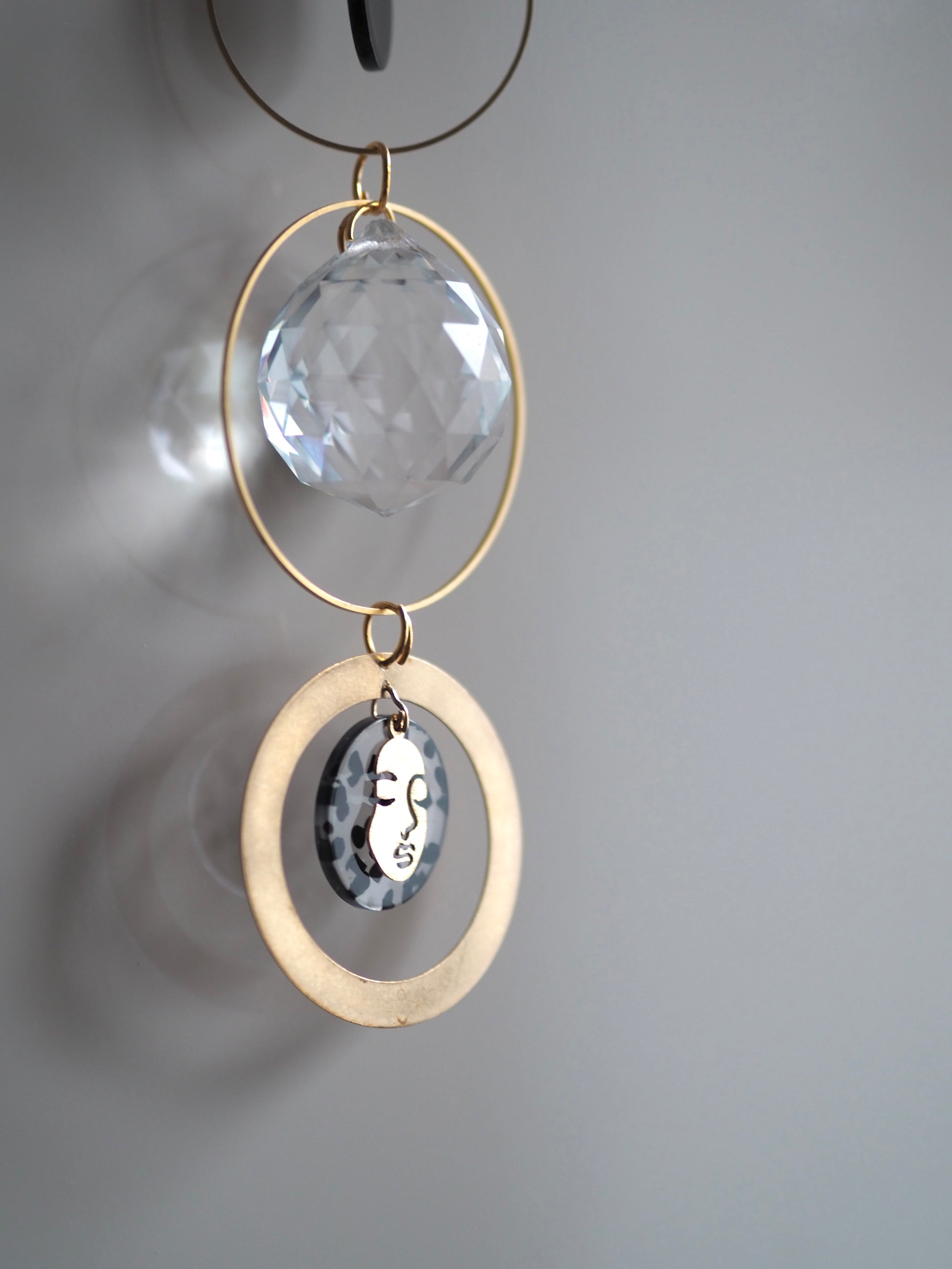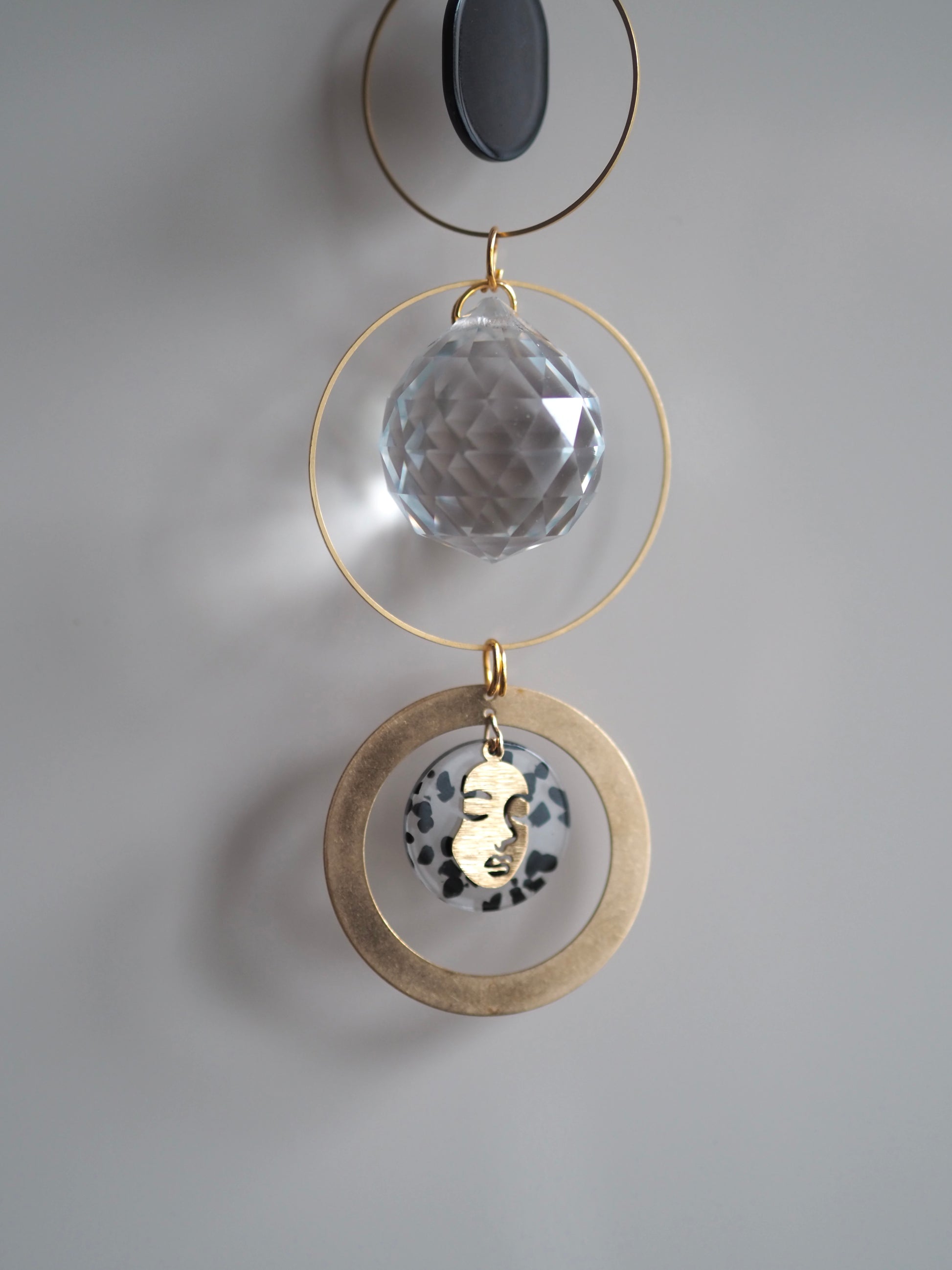 Maxi Suncatcher in Gold mit schwarzen Acryl Elementen und einem integrierten „Face“