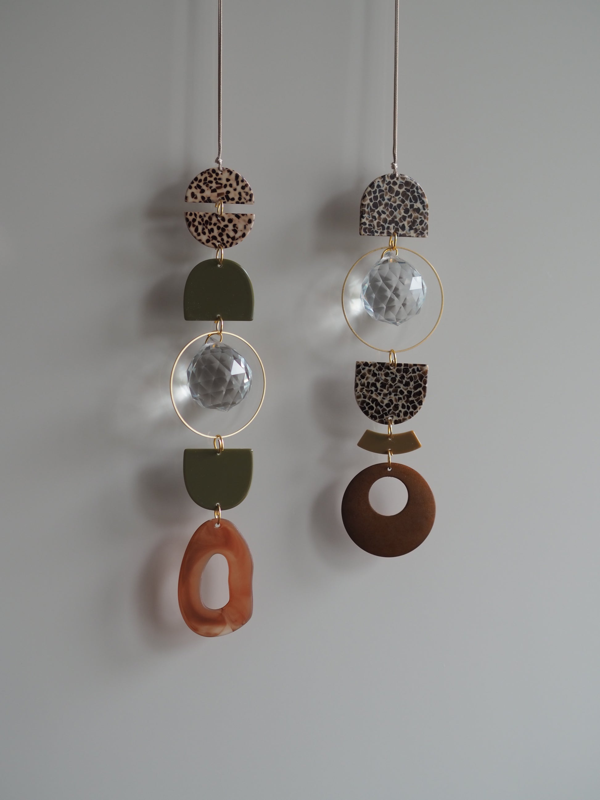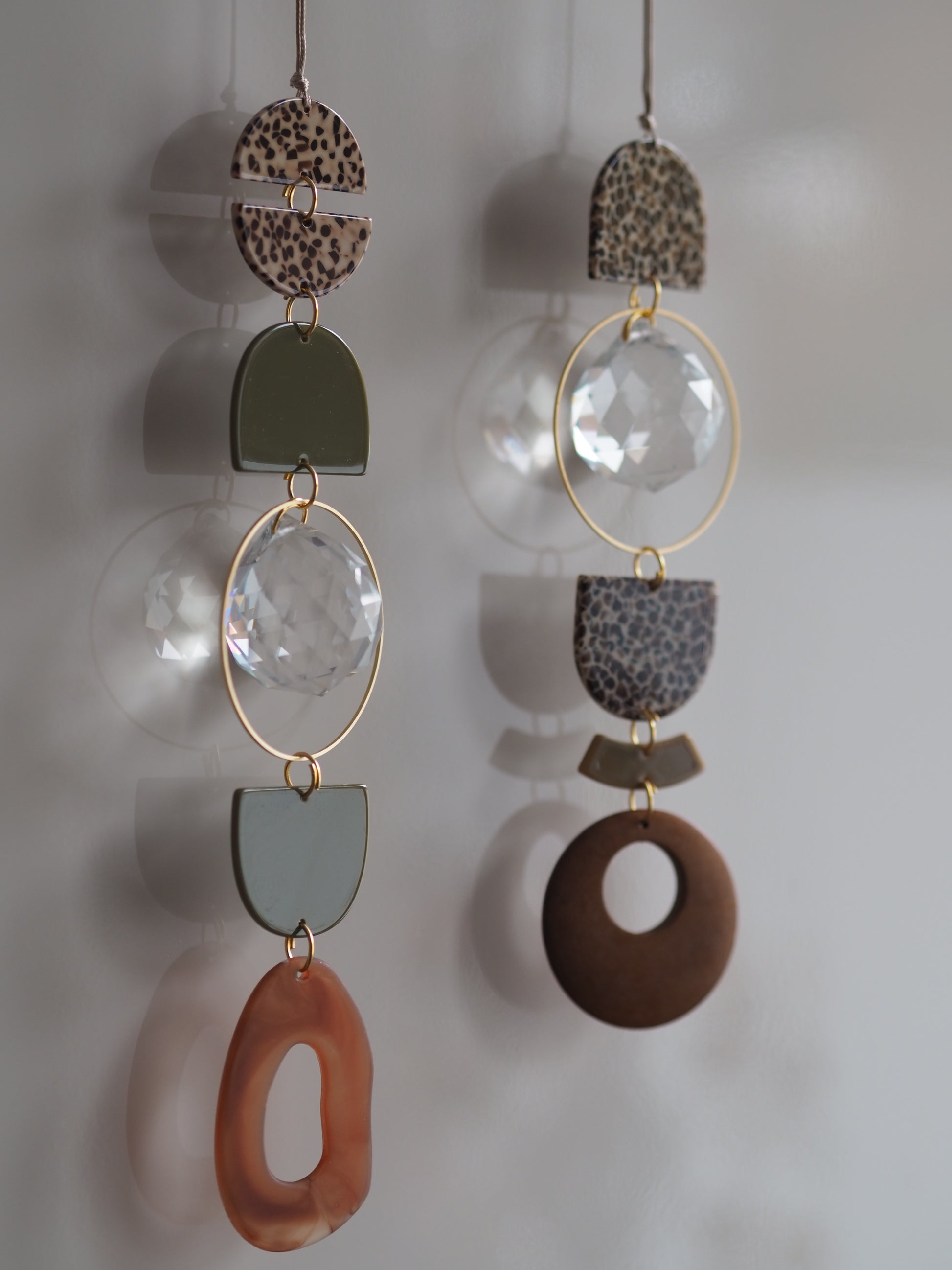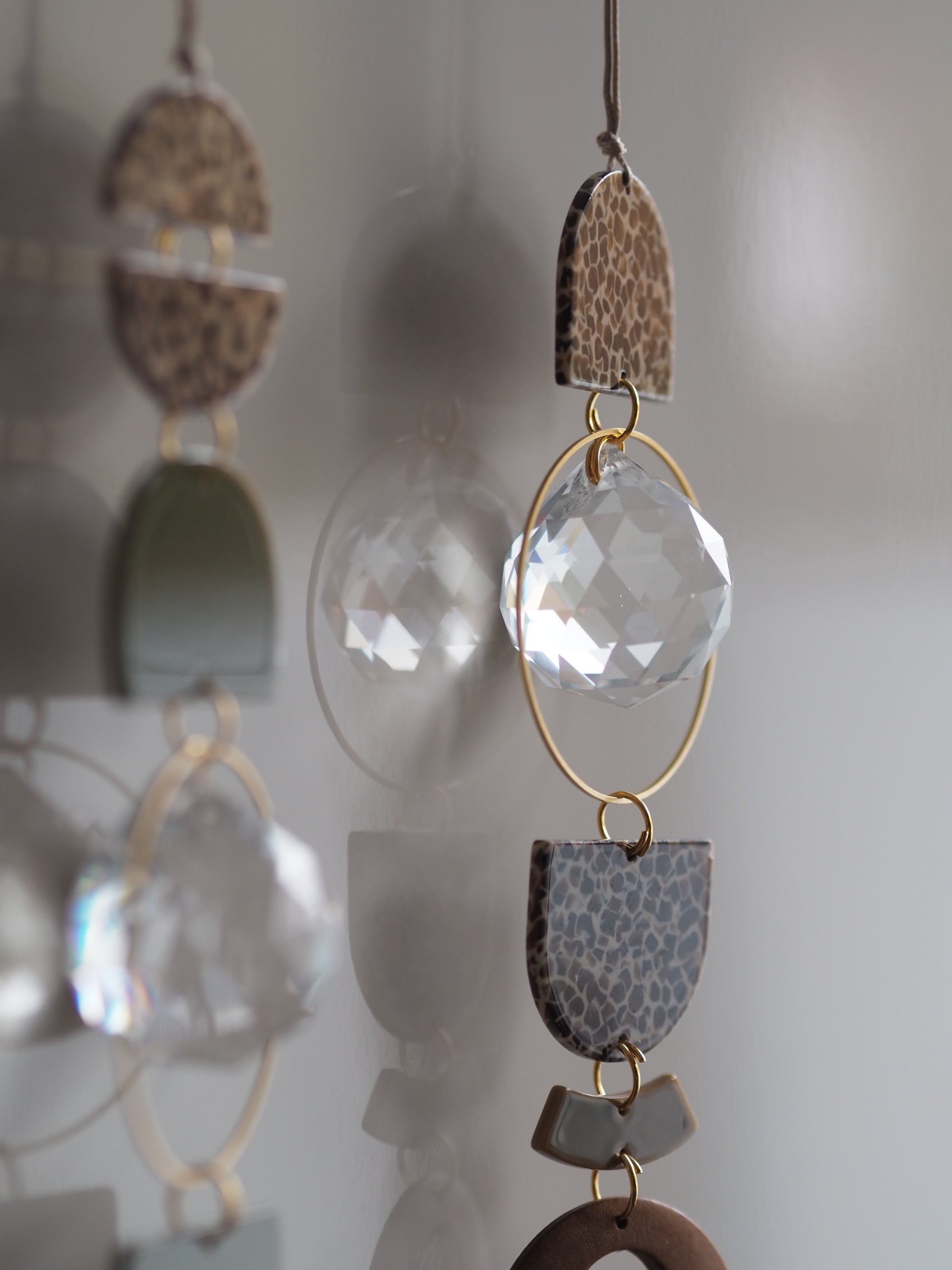 Integriert ist ein 3cm großer Kristall. Die Länge des Lichtfängers ist ca 20cm und er wird an einem 40cm langem Wachsband befestigt.