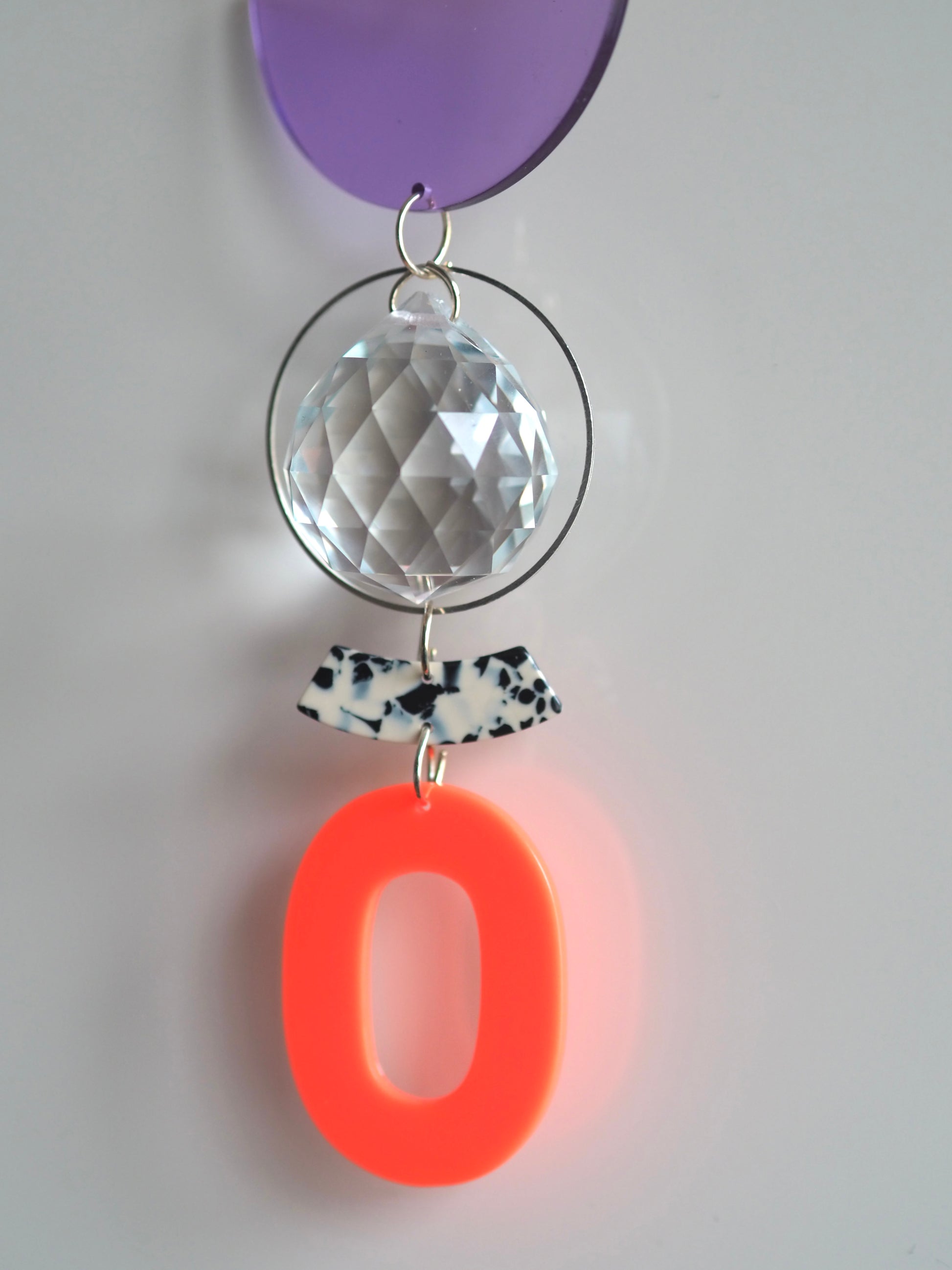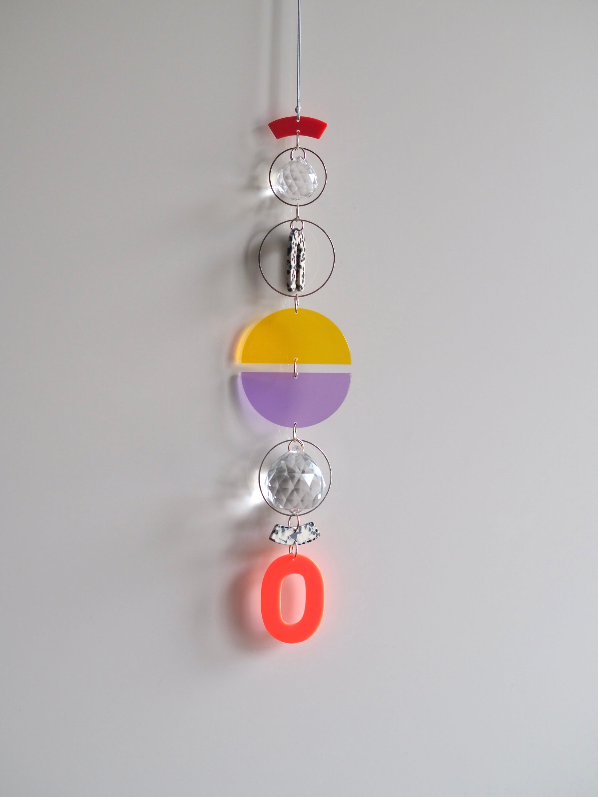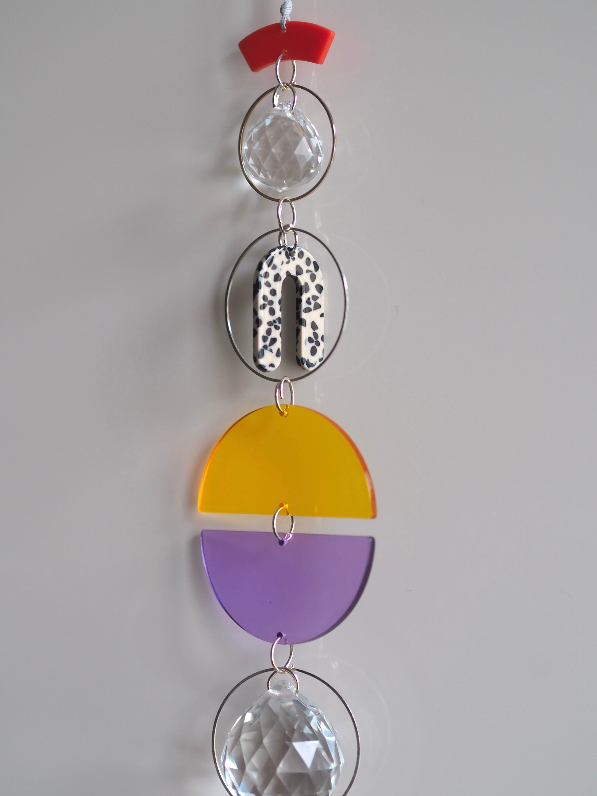 Großer Lichtfänger mit einer Länge von 30cm und zwei integrierten Kristallen (2&3cm). Befestigt ist er an einem 40cm langem Wachsband.