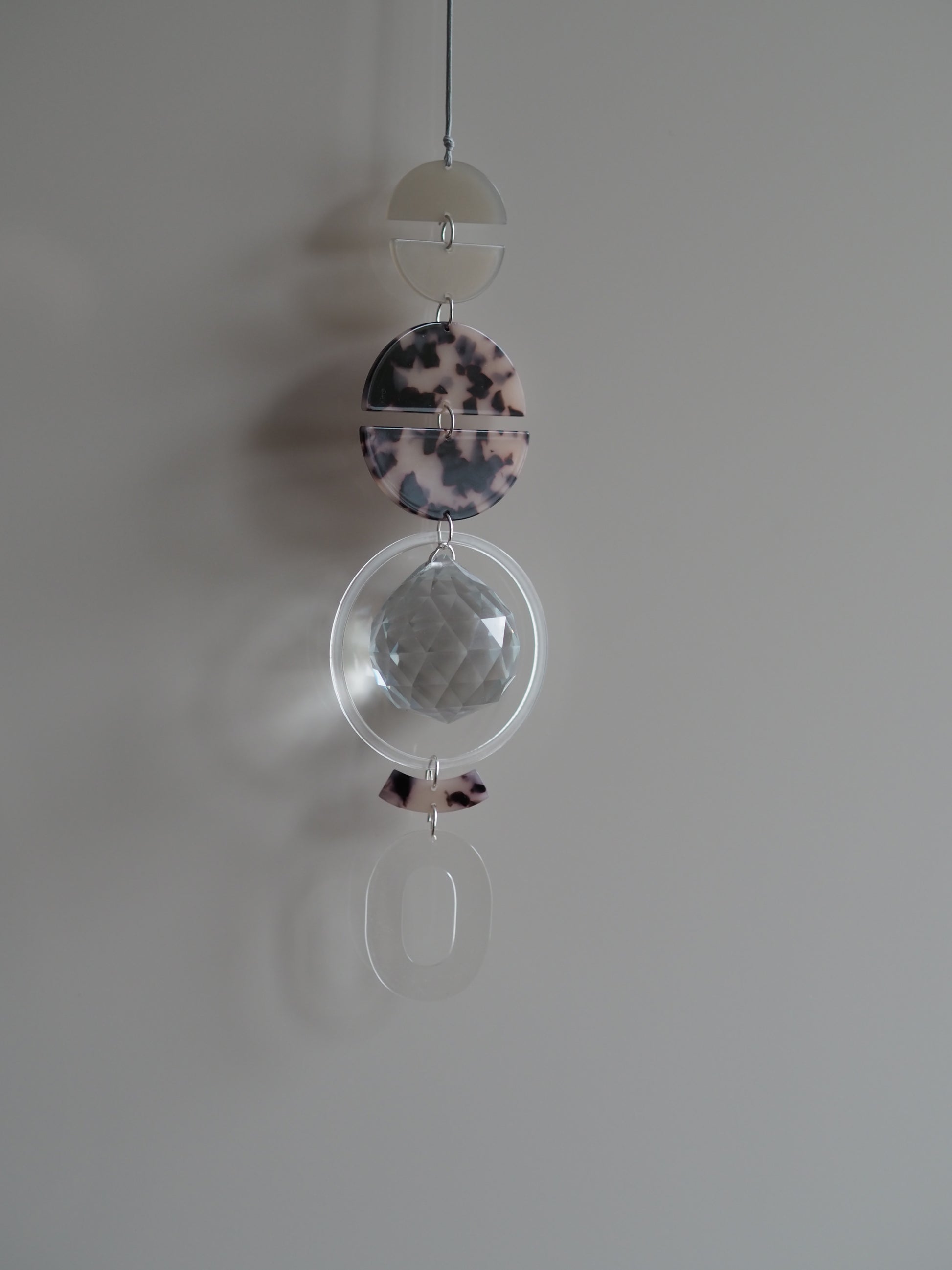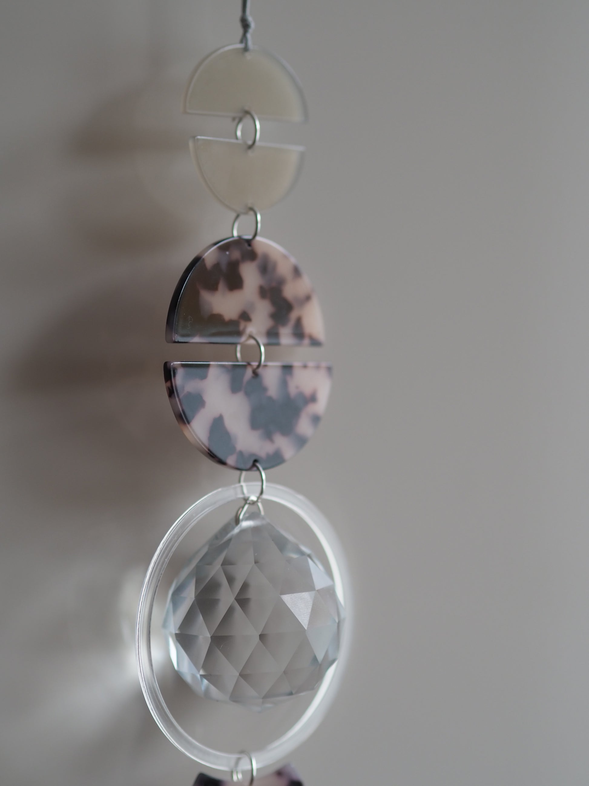 Großer Lichtfänger mit einem 4cm integrierten Kristall und einer ungefähren Länge von 25cm. Befestigt wird er an einem 40 cm langem wachsband.