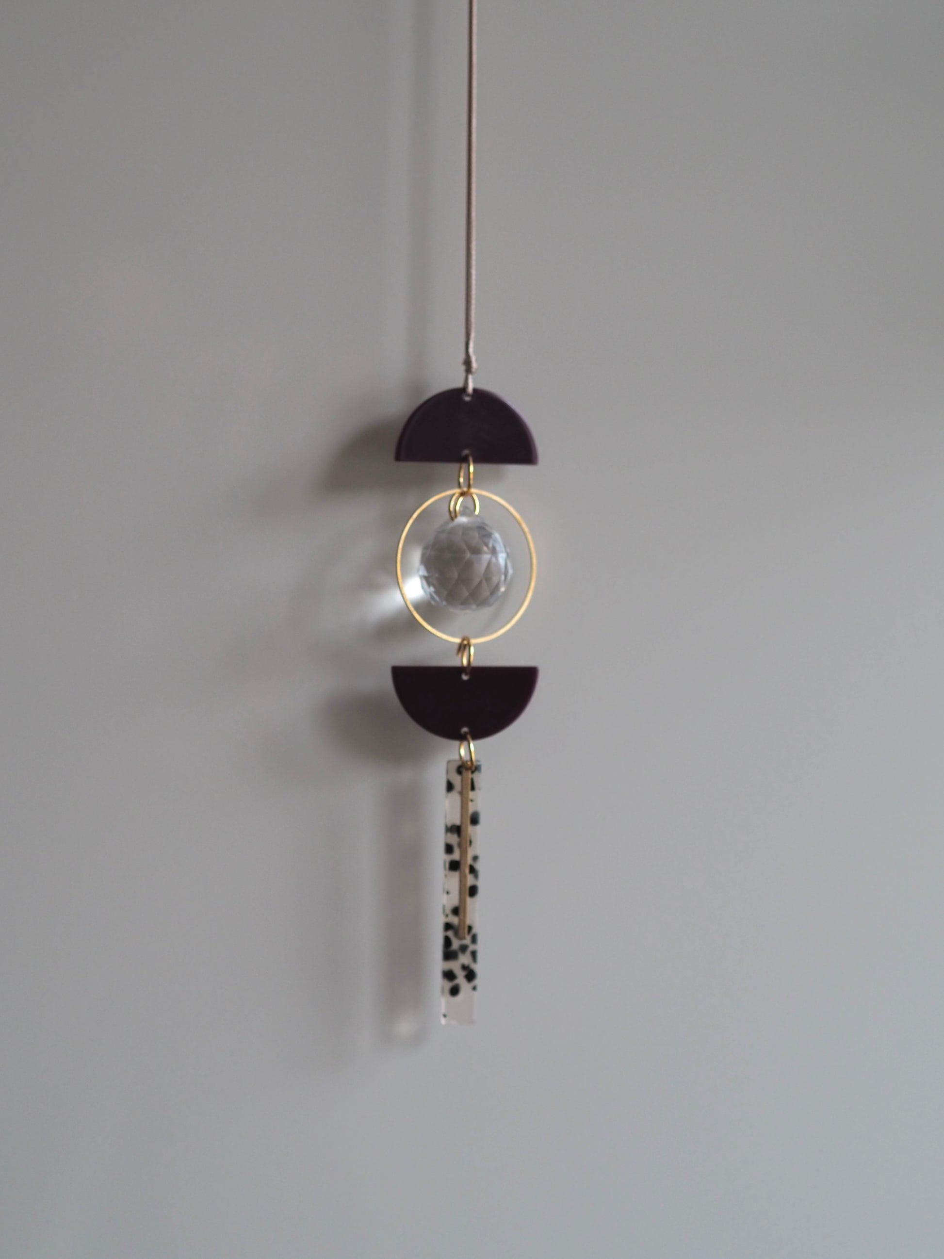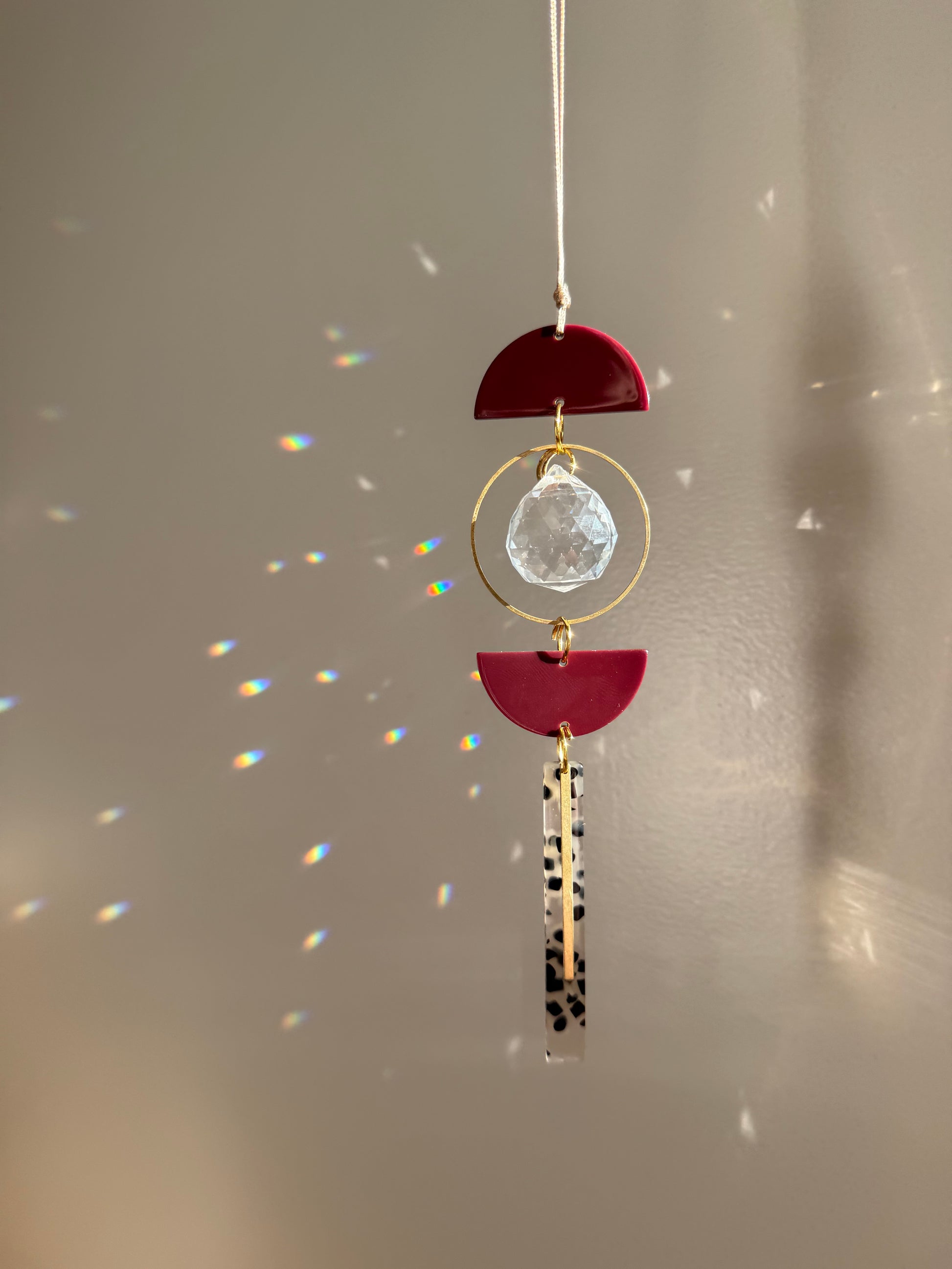 Mini Suncacher in einer Länge von 14cm. Integriert ist ein 2cm Prisma und befestigt ist der SUNCATCHER an einem 40 cm langen wachsband.